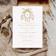 Elegante florale französische Rose Wappen Vintage Hochzeit Einladung. Vintag antikes Gold Wappen Hochzeitseinladung. Elegante Kalligrafie Script Einladung. Zeitlose florale französische Rose botanisches Wappen Hochzeit Einladung. Einladung zum Hochzeitmongramm-Wappen