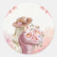 Elegante Frau mit Peonies Kunst, Dichtung und Musi Runder Aufkleber