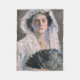 Dieses Design zeigt ein Gemälde des japanischen Künstlers Fujishima Takeji (1867-1943), der für sein Werk in einer Western-Tradition des Impressionismus bekannt ist. Es zeigt eine Dame, die ein elegantes weißes Outfit mit einem Schleier trägt. Sie hält einen schwarzen Ventilator in der Hand. Die Frau starrt eindringlich und selbstbewusst auf den Betrachter des Gemäldes. Es ist eine schöne Evokation der Weiblichkeit. Das Originalwerk wurde 1909 produziert.