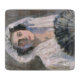 Dieses Design zeigt ein Gemälde des japanischen Künstlers Fujishima Takeji (1867-1943), der für sein Werk in einer Western-Tradition des Impressionismus bekannt ist. Es zeigt eine Dame, die ein elegantes weißes Outfit mit einem Schleier trägt. Sie hält einen schwarzen Ventilator in der Hand. Die Frau starrt eindringlich und selbstbewusst auf den Betrachter des Gemäldes. Es ist eine schöne Evokation der Weiblichkeit. Das Originalwerk wurde 1909 produziert.