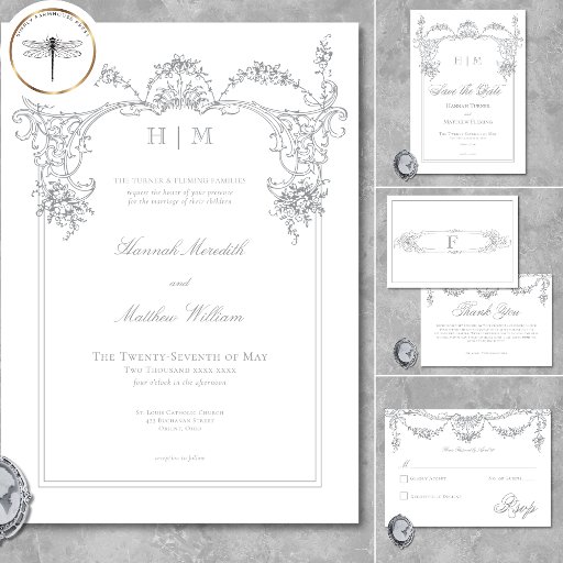 Elegante French Gray Viktorianisch Chinoiserie Hoc RSVP Karte