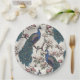 Diese eleganten Peacocks und Magnolia Blume Elfenbeinpapier-Teller verfügen über handgezeichnet blaue und aquamarine Pfauen, die auf den Ästen der Magnolia-Bäume in voller Blüte in schwarzer Tinte stehen. Eleganter Elfenbeinhintergrund.