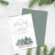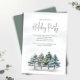 Dieses Design besticht durch eine Urlaubsparty mit einer eleganten Szene aus Aquarellwald mit Winterkiefern, einem grünen Walddesign, modernem Minimalismus, schlichter Vegetation und botanischem Laub, das sich perfekt für klassische Weihnachtsfeiern mit einem klassischen Flair eignet.