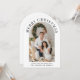 Moderne, bogenförmige Urlaubskarte mit Ihrem Foto und "Frohe Weihnachten" in eleganter Serifentypografie. Personalisieren Sie Ihren Namen und einen saisonalen Gruß in einfachen Typografie.