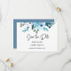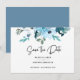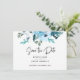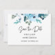 Elegante Frühlingsblauen blauen Blumen Hochzeit speichern das Datum. Feiern Sie Ihre Liebe mit dieser individuell gestaltbaren Frühjahrssaison-Suite, die mit einem zeitlosen, staubblauen und weißen Blumendesign aufwartet. Delikate Aquarellblumen und sanfte Farbtöne schaffen ein romantisches und raffiniertes Aussehen, das sich perfekt für eine Frühjahrs- oder Gartenhochzeit eignet. Set Sie den Ton für Ihren besonderen Tag mit einer wunderschön gestalteten Blumensuite, die Ihren Stil widerspiegelt.