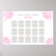 Das elegante Hochzeitsplakat-Design zeichnet sich durch einen Rahmen romantischer Bauern, ein Monogramm der Braut- und Bräutigam-Namen und das Hochzeitstermin, einen individuellen Vorlagentext für Tischnummern und Gästebamen aus. Fuchsienrosa, Zinngrau und Weiß.