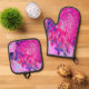 Elegante Fuchsia und dunkelblaue Limelight Hydrang Ofenhandschuh & Topflappen-Set