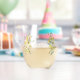 Delikate gelbe Blumen in Aquarell schmücken dieses schöne Sommernachmittagsweinglas. Der Garten-Hochzeitsgast oder das Brautparty-Gefallen wird durch einen sanften grünen Kreissegment und botanische Blätter unter den eleganten, sonnigen Pfannkuchen betont. Blumen und Licht, ideal für einen Empfang im Freien.