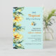 Auf der links Seite der Leinwand entfaltet sich eine exquisite Szenerie, denn elegante, tropisch-gelbe Blumen sind kunstvoll inmitten üppiger grüner Blätter angeordnet. Die lebhaften Farbtöne schaffen eine visuell atemberaubende Darstellung, die das Wesen eines tropischen Paradieses einnimmt. Die sorgfältige Platzierung jeder Blüte ruft ein Gefühl von Schönheit und Ruhe hervor. In der Mitte erklärt ein anmutig geschriebener Kalligrafie-Schriftart die fröhliche Botschaft: "Das kleine tropische Baby ist auf dem Weg." Die Wahl des Schriftartes fügt eine Touch von Eleganz hinzu, die die Eleganz der Komposition widerspiegelt. Diese künstlerische Ankündigung dient nicht nur als Feier des bevorstehenden neuen Lebens, sondern auch als Einladung. Umsichtige Details, wie Veranstaltungsort, Ort, Datum und Uhrzeit, sind für die Führung und Information der Gäste sorgfältig zusammengestellt. Das Gesamtdesign verbindet harmonisch die Schönheit der Natur mit der Spannung des bevorstehenden Events und schafft so ein visuell faszinierendes und emotional resonantes Stück.