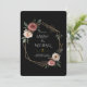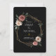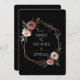 Ein luxuriöses Hochzeitsdesign mit dunkelstrukturiertem Hintergrund, goldgelbem geometrischem Rahmen und zarten Aquarellfarben-Rose in Rosa, Weiß und staubiger Rose. Elegante Vegetation ergänzt die Blumen und schafft eine elegante und romantische Ästhetik. Ideal für Paare, die nach einem einzigartigen und modernen Stil der Hochzeitskarte suchen. Vollständig anpassbar, um Namen, Datum und Hochzeitsdetails hinzuzufügen.