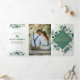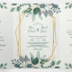 Elegante geometrische Rahmen-Blätter | Foto Wedding Tri-Fold Einladung Ideal für eine Hochzeit, diese All-in-One-Einladung zeigt einen geometrischen Rahmen, der mit üppiger Vegetation verwoben ist und eine harmonische Mischung aus Eleganz und rustikalem Charme schafft. Das Design umfasst moodele Blätter mit Aquarellfarben und Eukalyptus, die an ein modernes böhmisches Waldambiente erinnern. Diese umfangreiche Hochzeitssuite umfasst alle Elemente, die Sie brauchen, und präsentiert sich bequem in einem gefalteten Single. Im Rahmen dieser Einladung finden Sie nicht nur Ihre Hochzeitseinladung und Details, sondern auch ein Foto der Verlobung, mit dem Sie eine Erinnerung an Ihre Gäste teilen können. Zusätzlich gibt es eine selbst adressierte RSVP-Karte, die Sie einfach losschicken und an Sie zurückschicken können, was den UAWG optimiert. Um eine persönliche Touch hinzuzufügen, passen Sie die Titelseite mit Ihren Namen und Ihrem Hochzeitstermin an, sodass sie einzigartig ist.