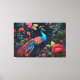 eleganter, farbenfroher Blue Pfau in einem schönen Blumengarten auf schwarzer KI-Kunst, GESCHAFFEN VON MINX267