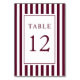 Elegante gestreifte burgunderrote Hochzeit Tischnummer