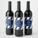 Elegante, gestreifte Hochzeit - Navy Blue, White Weinetikett