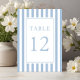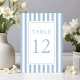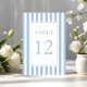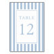 Elegante gestreifte Puderblaue Hochzeit Tischnummer