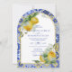 Elegante Gold Arch Italienisch Blue Tile Lemons We Einladung