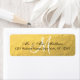 Elegantes Gold Black Monogram Wedding Return Address Label Design mit einem DRUCKTEN Foto Goldfolie auf mattem Papier als Hintergrund, mit einem weißen Skript Monogramm und schwarzem Text. Anpassbare Monogram Wedding Rücksendeadressen-Aufkleber für Ihre Einladungen oder Hochzeitskarten. Von Elke Clarke© für MonogramGallery bei Zazzle. Passen Sie Ihre Monogramm-Initial-, Namen- und Adressinformationen an. Bei anderen Foto-Effekten im Hintergrund kontaktieren Sie den Händler.