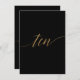 Dieser elegante schwarze und goldene Tisch mit 10 Tischnummern eignet sich perfekt für eine Hochzeit. Das neutrale Design besticht durch eine minimalistische Karte, die mit romantischen und skurrilen Imitaten mit Goldfolien-Typografie dekoriert ist. Die Karte druckt auf der Vorder- und Rückseite (beidseitig). Andere Tischnummern in der Sammlung werden separat verkauft. Bitte beachten Sie: Dieses Design enthält keine echte Goldfolie. Es ist eine hochwertige Grafik, die wie Goldfolie aussieht.