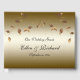 Elegantes Gold Blätter Wedding Guest Book mit vergoldeten Blätter auf goldenem Hintergrund. Der schwarze Text beinhaltet: unser Gästebuch, Brautpavillon und Hochzeitstag. Um eine persönliche Note zu erhalten, ersetzen Sie einfach den Beispieltext mit Ihren Daten, indem Sie die Vorlage Schritt für Schritt verwenden.