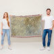 Elegante Gold Blätter Muster Beige Blau Decke