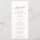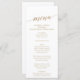 Diese elegante vergoldete Kalligraphie-Dinner-Karte eignet sich perfekt für eine einfache Hochzeit. Das neutrale Design besticht durch eine minimalistische Karte, die mit romantischen und skurrilen Imitaten mit Goldfolien-Typografie dekoriert ist. Diese Speisekarte kann für Hochzeitsfeiern, Proben oder jede Veranstaltung verwendet werden. Bitte beachten Sie: Dieses Design enthält keine echte Goldfolie. Es ist eine hochwertige Grafik, die wie Goldfolie aussieht.