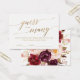 Diese elegante Goldkalligraphie und Blüte, wie viele Küsse Karten sind eine lustige Aktivität für ein Herbst-Brautparty. Füllen Sie ein Glas mit Hersey's Kisses und lassen Sie Ihre Gäste erraten, wie viele Bonbons im Glas sind. Die nahe Antwort gewinnt einen Preis! Das Design besticht durch romantische und skurrile Imitate mit Goldfolien-Typografie und einem prächtigen Bouquet aus Rosa, Marsala und Bordeaux-Blume auf der Rückseite. Bitte beachten Sie: Dieses Design enthält keine echte Goldfolie. Es ist eine hochwertige Grafik, die wie Goldfolie aussieht.