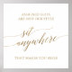 Dieses elegante goldene Kalligrafie-Schild "sitz irgendwo" ist perfekt für eine einfache Hochzeit. Das neutrale Design zeichnet sich durch ein minimalistisches Plakat aus, das mit romantischen und skurrilen Imitaten mit Goldfolien-Typografie dekoriert ist. Auf dem Schild steht: "Sitzplatzreservierung ist nicht unser Stil, der Sie zum Lächeln bringt". Bitte beachten Sie: Dieses Design enthält keine echte Goldfolie. Es ist eine hochwertige Grafik, die wie Goldfolie aussieht.