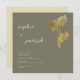 Ein Haufen Blumen aus der Feder, handgezeichnet mit schwarzem Graphitstift und digital mit Goldfolie (nicht echter Folie) geschichtet, schmückt dieses elegante, moderne, schlichte und raffinierte Frühjahrsgeschenk-Einladungs-quadrat mit einfacher, minimalistischer moderner Typografie, moderner Kalligraphie in den Namen von Braut und Bräutigam und einem mittelgrünen Hintergrund.