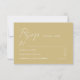 Elegante goldene RSVP-Karte, die Ihr botanisches oder minimalistisches Hochzeitsthema ergänzt. Mit seinem goldgelben Hintergrund und der weißen, individuell anpassbaren Typografie bietet es einen eleganten Rahmen für Ihre Gäste. Auf der Rückseite befindet sich ein passendes Ginkgo-Blatt-Muster für einen zusammenhängenden Look. Diese Karte ist perfekt geeignet für Boho, Rustikale, Gartensitze oder elegante Hochzeiten. Sie ist vollständig editierbar und lässt sich einfach für Ihren großen Tag personalisieren.