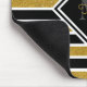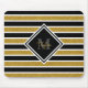 Dieses moderne Mauspad zeichnet sich durch ein elegantes, trendiges Design aus, mit goldfarbenem Glitzer in den Imitaten, schwarz-weiß gestreiftem Muster. Personalisieren Sie es mit Ihrem Namen in einem goldenen Skript-Schriftart und einem Monogramm in grau.