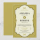 Mit dieser klassischen goldenen Hochzeitseinladung, die für zeitlose Romantik und raffinierte Eleganz entworfen wurde, laden Sie Ihre Lieben ein. Mit Zierrahmen, formalen Serifen-Schriftart und einem ausgeklügelten Farbschema ist es ideal für traditionelle oder formale Zeremonien. Details: Verzierter Rahmen und Bildlauf mit detaillierten Angaben zur formalen Serifentypografie mit gut erkennbaren Braut- und Bräutigam-Namen Inklusive kompletter Veranstaltungsdetails: Datum, Uhrzeit und Standort Elegantes Layout perfekt für Hochzeiten Vollständig anpassbar mit Ihrem persönlichen Text