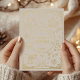 Feiern Sie die Saison mit zeitlosem Charme. Mit handgezeichnet Goldlinien-Illustrationen klassischer Weihnachtselemente - Ornamente, Sterne, Heilige und Bögen - die alle Ihren Familiennamen und festlichen Gruß prägen. Eine raffinierte, neutrale Gestaltung, die Vintage Eleganz mit minimalistischer Wärme verbindet.