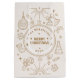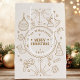 Feiern Sie die Saison mit zeitlosem Charme. Mit handgezeichnet Goldlinien-Illustrationen klassischer Weihnachtselemente - Ornamente, Sterne, Heilige und Bögen - die alle Ihren Familiennamen und festlichen Gruß prägen. Eine raffinierte, neutrale Gestaltung, die Vintage Eleganz mit minimalistischer Wärme verbindet.