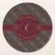 Elegante Gold Monogram Karierter Weihnachtsfeierta Runder Pappuntersetzer
