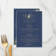Elegante Gold Monogram Navy Blue Wedding Menükarte