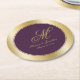 Elegante Gold Monogram Script Plum Lila Wedding Runder Pappuntersetzer