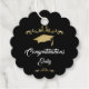 Black Elegant Gold Ornament Herzlichen Glückwunsch Graduate Abschluss Gunst Tags. Abschluss-Tag mit Graduierungsmütze, trendige Schrift und Goldverzierungen auf schwarzem Hintergrund. Herzlichen Glückwunsch und der Name des Absolventen - personalisieren Sie mit Ihrem Namen.