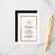 Mit dieser eleganten Einschließkarte mit modernem Drehbuch, schwarzem Text mit einer goldenen Palme und einem goldenen Metallrahmen auf der Vorderseite der Karte erhalten Sie alle Details Ihrer Hochzeitsfeier. Auf der Rückseite befindet sich ein schwarzer Hintergrund, der die Koordination übernimmt.