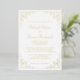 Diese elegante Vintag-inspirierte formelle Hochzeitseinladung enthält den Text in realem Goldfolienskript und Serif-Schriftart, gerahmt durch ein zartes Vintages Goldrebenmotiv.