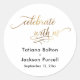 Elegante Gold Script Celebrate mit Uns Hochzeit Runder Aufkleber