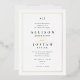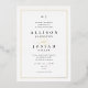 Diese klassische, elegante Gold Foil Wedding Einladung ist einfach und vielseitig. Es zeichnet sich durch ein elegantes Schwarz-Weiß-Design mit minimalem Monogramm, goldenen Skriptdetails aus, die skalierbar und beweglich sind, einem einfachen Goldrahmen und formalem bearbeitbarem Text aus. Klicken Sie auf die Schaltfläche Bearbeiten, um dieses Design anzupassen.