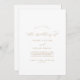 Diese elegante goldene Schrift vor und hinten Hochzeit Einladung ist perfekt für eine einfache Hochzeit. Das minimalistische Gold-Weiß-Design besticht durch extravagante romantische Typografie mit modernem Glam-Stil. Anpassbar in jeder Farbe. Behalt das Design minimal und elegant, wie es ist, oder personalisiere es durch Hinzufügen von eigenen Grafiken und Kunstwerken.