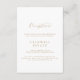 Diese elegante Goldskriptkarte für den Empfang ist ideal für eine einfache Hochzeit. Das minimalistische Gold-Weiß-Design besticht durch extravagante romantische Typografie mit modernem Glam-Stil. Anpassbar in jeder Farbe. Behalt das Design minimal und elegant, wie es ist, oder personalisiere es durch Hinzufügen von eigenen Grafiken und Kunstwerken. Personalisieren Sie diese Detail-Gehäuse-Karte mit Ihren Empfang-Informationen und fügen Sie Ihre Website-Adresse Hochzeit auch!