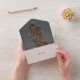 Alles in einer Hochzeitseinladung mit Ihrem besonderen Foto und der eleganten Goldtypografie. Die Einladung enthält eine perforierte RSVP-Karte, die für Sie individuell adressiert oder links als leere Karte für die Handschrift der Adressdaten Ihres Gastes verwendet werden kann. Entwickelt von Thisisnotme©