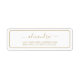 Elegante Gold Script Hochzeitsskripte Rücksendeadresse Elegant, moderne Goldhandschrift geschrieben. Familienname Hochzeit Rücksendeadressen-Aufkleber. Mit einer hübschen, handgeschriebenen Schriftzeichen- und Bräutigam-Namensvorlage mit Swash-Schwanz-Schriftart, kleiner Herzform oben, um einen dünnen Rahmen. Einfache Personalisierung mit Ihren Namen und Rücksendeadresse-Infos. Hochzeitslabel Hochzeitsmarke Rücksendeadresse Gold elegante minimale chic handgeschriebene Schrift Kalligraphie Typografie einfaches minimalistisches Brautparty moderne Zukunft mr und mrs