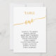 Diese eleganten Karten der Tischnummer 1 sind ideal für eine Hochzeit. Das neutrale Design besticht durch eine minimalistische Karte, die mit romantischen und skurrilen Imitaten mit Goldfolien-Typografie dekoriert ist. Die Karte druckt auf der Vorder- und Rückseite (beidseitig).