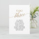 Diese eleganten Tischnummer 3-Sitzkarten eignen sich perfekt für eine Hochzeit. Das neutrale Design besticht durch eine minimalistische Karte, die mit romantischen und skurrilen Imitaten mit Goldfolien-Typografie dekoriert ist. Die Karte druckt auf der Vorder- und Rückseite (beidseitig).
