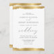 Diese elegante Hochzeitseinladung besticht durch ein vergoldetes Imitat-Randdesign an der oberen und unteren Kante. Das Wort "Hochzeit" erscheint in kalligrafischer Schrift. Passen Sie den kohlegrauen Text mit den Namen der Braut und des Bräutigams und den Einzelheiten der Hochzeit an. Die goldene Kante wird auf der Rückseite wiederholt.