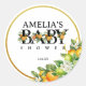 Elegante Gold Watercolor Citrus Baby Shower Sticke Runder Aufkleber