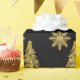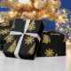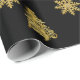 Wrap deinen Urlaub Geschenke in diesem eleganten Gold-und schwarzen Verpackungspapier. Dieses Papier zeigt einen strukturierten Look Weihnachtsbaum und Schneeflocken Muster auf einem schwarzen Hintergrund. Der Weihnachtsbaum entstand aus einem Foto einer filigranen Metallfiligrane.